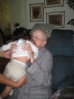Visiting Great Grandpa Steele: Ella was awake after Storytime so we made a quick stop and visited Great Grandpa Steele. Ella was pretty well behaved (i.e. friendly) and even allowed him to kiss her and sit on his lap.